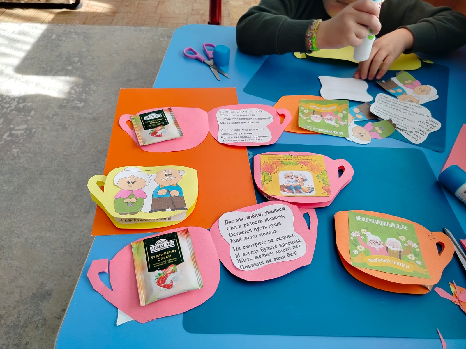 С самого утра мы с ребятами принялись за изготовление небольших сувениров, которые будут приятны нашим бабулям и дедулям, а на прогулке вручали их. Сколько теплых слов услышали дети, как приятно было поделиться небольшой частичкой души.