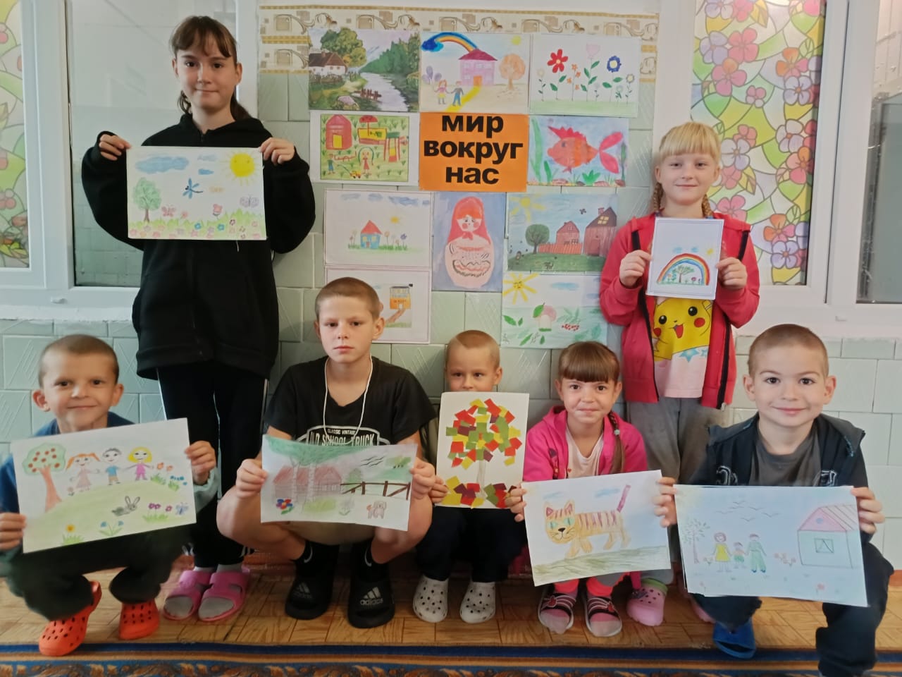 В начале осени ребята поучаствовали в конкурсе рисунков «Мир вокруг нас». Проявив фантазию, рисовали с удовольствием летние цветы и любимых домашних животных, свою школу, свою семью и дом. Проигравших не было, победили все, потому что почувствовали себя настоящими художниками и постарались передать красоту окружающего мира.