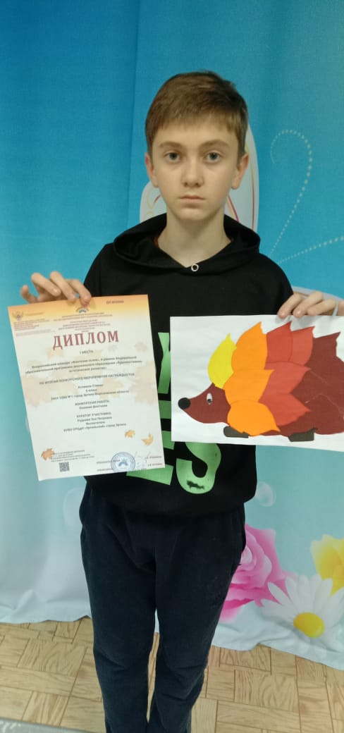 Воспитанник нашего центра Асламов Степан занял 1 место и награждён Дипломом во Всероссийском конкурсе,,Фантазии осени". От всей души поздравляем! Этот результат твоих стараний и упорства.Пусть в твоей жизни будет ещё много таких моментов гордости,а все твои мечты непременно сбываются!